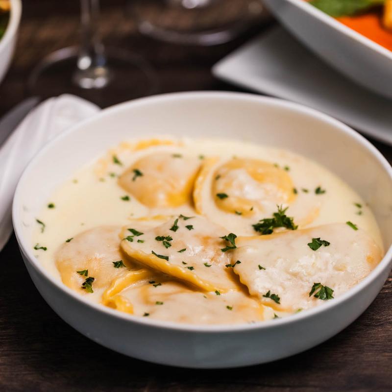 Sautéed chicken or shrimp, creamy parmesan sauce • Chicken $14.00 | Shrimp $18.00